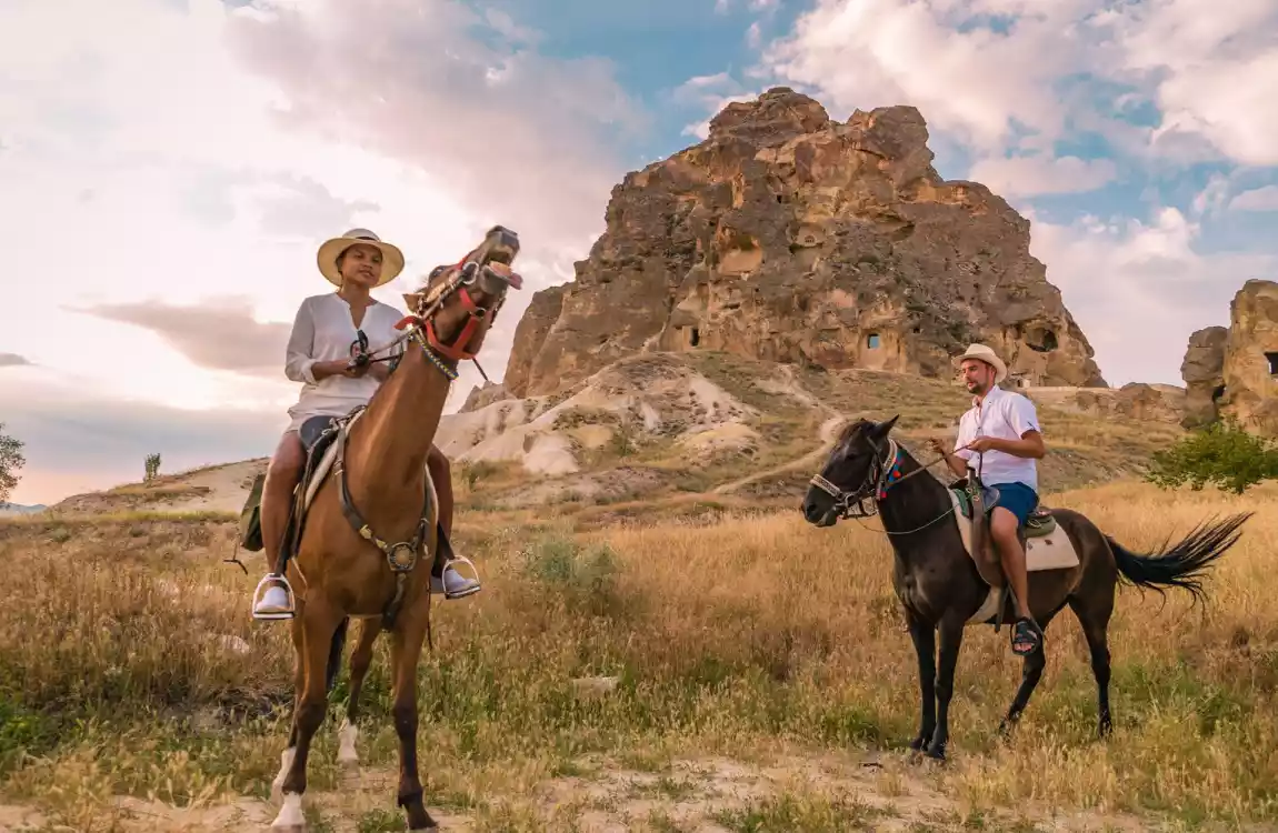 Cappadocia is a region in central Anatolia, Turkey, known for its unique geological formations and underground cities. It's also a popular destination for horseback riding tours, which offer a unique and thrilling way to explore the region's stunning landscapes. Horseback riding tours in Cappadocia typically last a few hours and take you through the region's breathtaking valleys, rock formations, and hidden trails. You'll have the opportunity to ride through the region's iconic "fairy chimneys," towering rock pillars formed by erosion over thousands of years. As you ride, you'll have the chance to take in the stunning views of Cappadocia's rolling hills and valleys, as well as its vibrant wildlife. You may even spot some of the region's famous rock-cut churches and monasteries, hidden among the cliffs and valleys. Most horseback riding tours in Cappadocia are suitable for riders of all levels, from beginners to experienced equestrians. The horses are well-trained and experienced, and the tour guides are knowledgeable about the region and its history. So why not add a horseback riding tour to your list of things to do in Cappadocia? It's a unique and thrilling way to experience this beautiful region and all it has to offer.