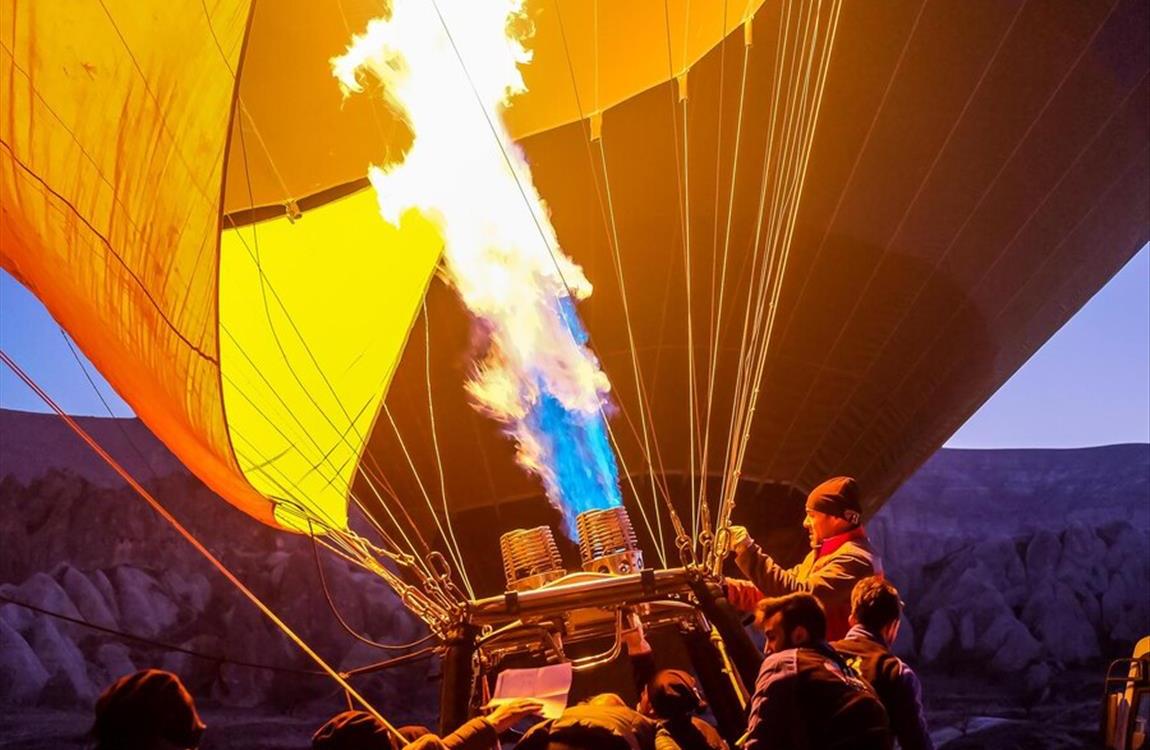 participants. As the Hot Air Balloon starts to rise above the ground, expect to feel the first adrenaline boosts and your levels of enthusiasm increasing. Your flight with a Hot Air Balloon is a great opportunity to observe Cappadocia during the dawn, and unfold its exceptional natural beauty. From the basket, you can enjoy breath-taking panoramic views, as the balloon flies above Cappadocia’s valleys. Hence, get your camera ready to capture these unique moments.